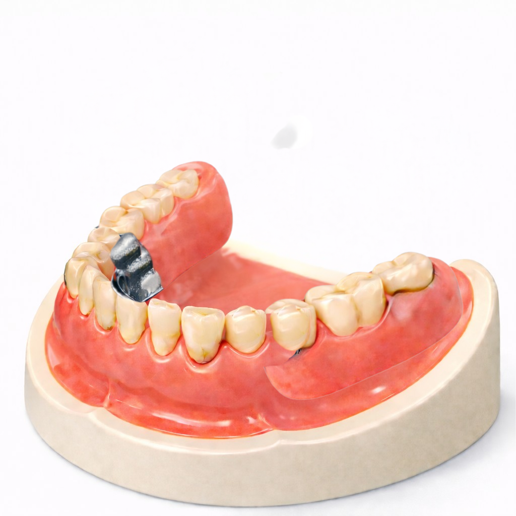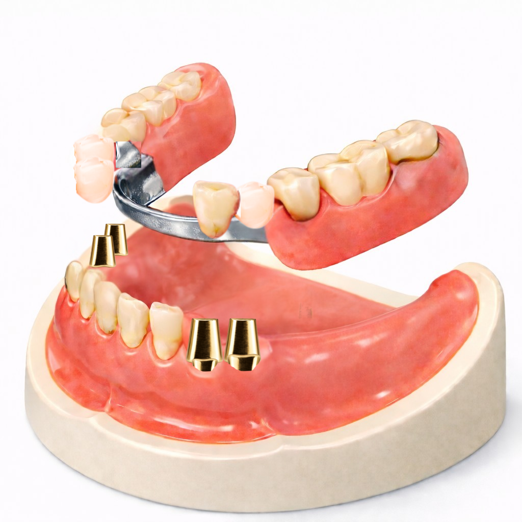 • 残っている全ての歯をこの装置にする事で図解のような金属のバーをなくす事も可能ではあります。(用適応)