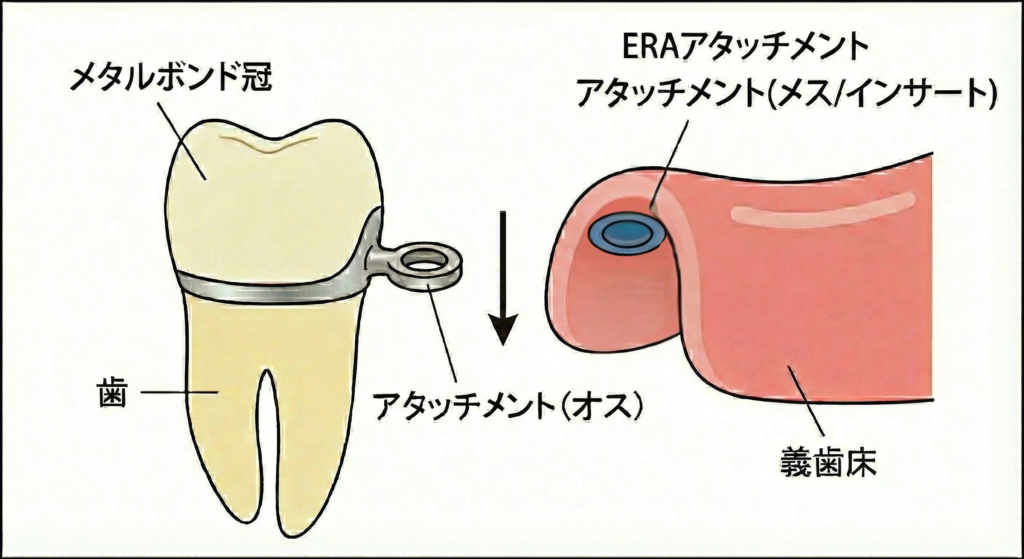 • 残っている歯に特殊な装置(アタッチメント)を取り付けて固定します