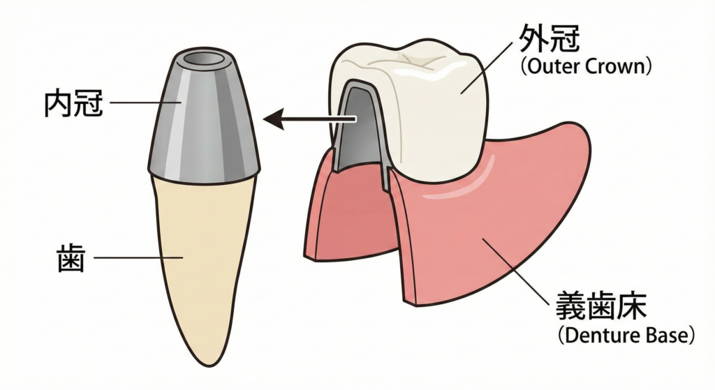 • 二重構造のクラウン(内冠・外冠)でしっかりと固定します
